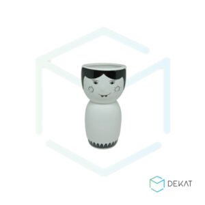 – Lindo cachepot decorado com desenhos que formam uma carinha de menina gótica, com traços e formas na base do vaso na cor preta